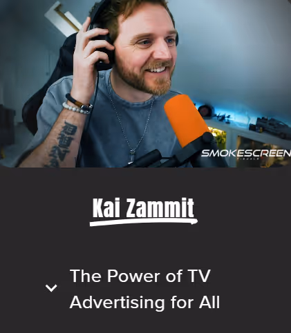 Kai is from Smokescreen Visuals and will talk about the accessibility of TV advertising to small and medium sized companies - featuring a case study of Lightning Fibre with Rob Reaks - our Chief Commercial Officer.