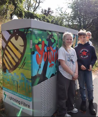 Artwork created by young people from the Heathfield Youth Hub is now an eye-catching sight on a Lightning Fibre network cabinet on Station Road.